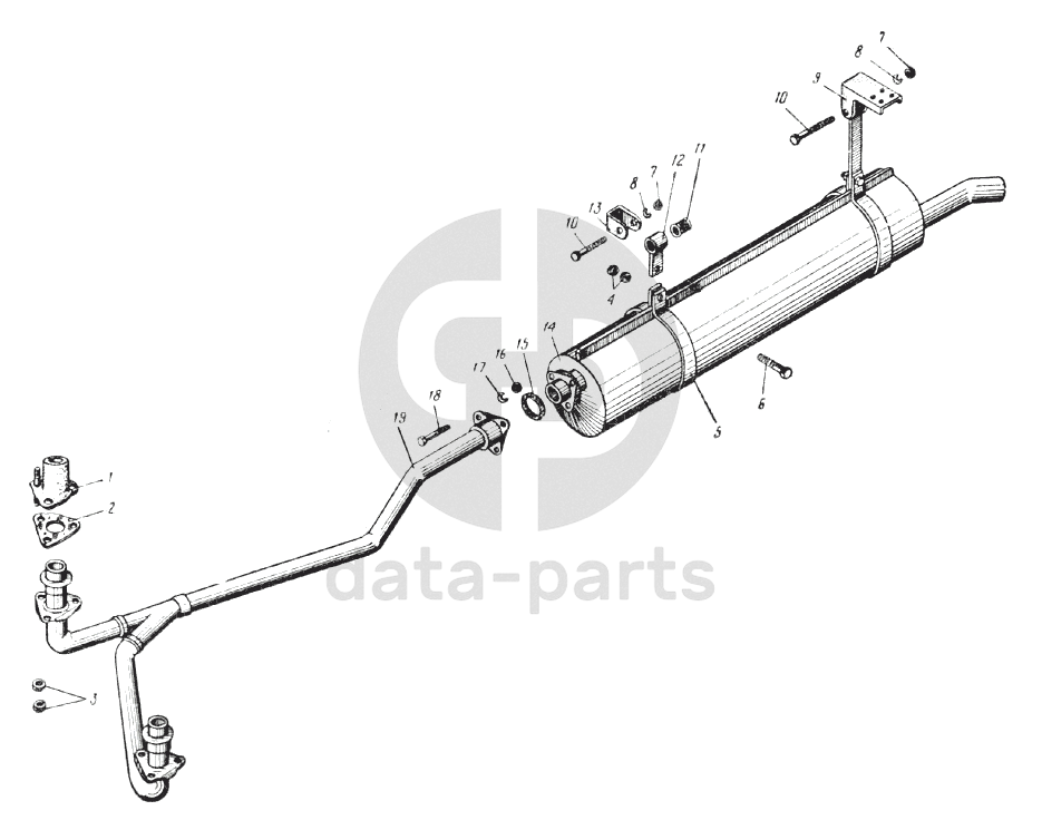Система выпуска газов автомобиля Урал-377 (Рис. 31) УРАЛ-375