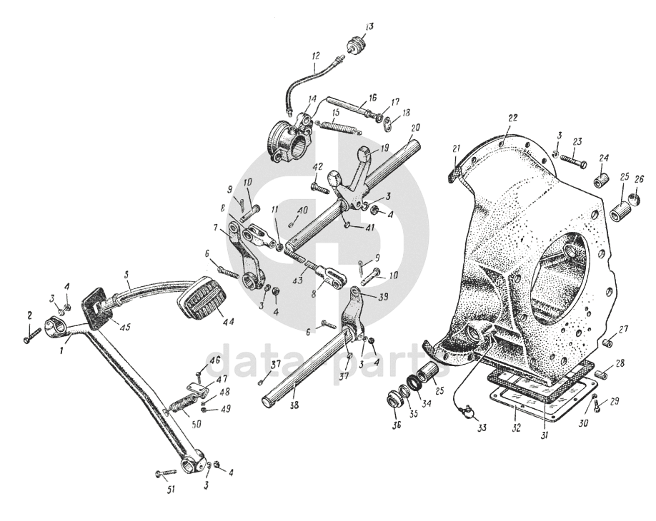 Картер и привод сцепления (Рис. 39) УРАЛ-375