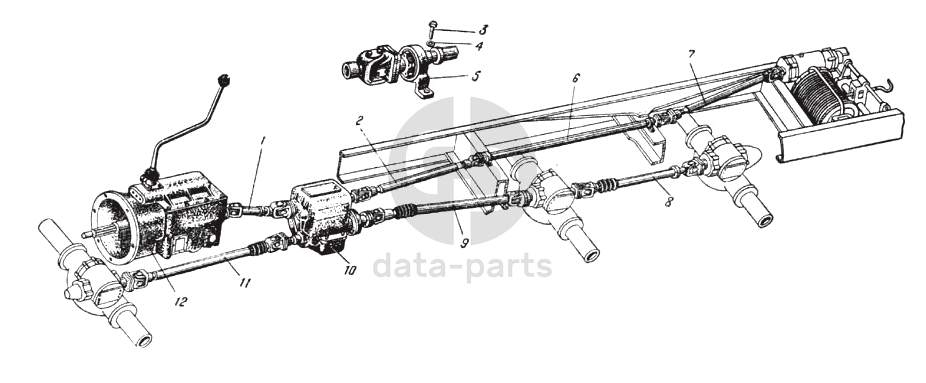Схема расположения карданных валов автомобиля Урал-375Д (Рис. 50) УРАЛ-375