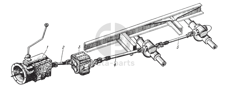 Схема расположения карданных валов автомобиля Урал-377 (Рис. 51) УРАЛ-375