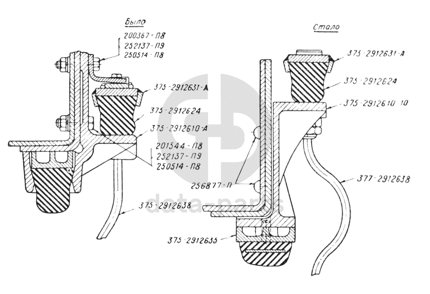 Изменение крепления тросов отбоя задней подвески (Рис. 70) УРАЛ-375