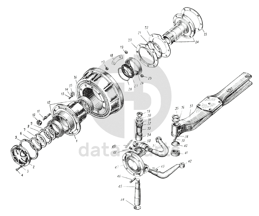 Передняя ось и ступица колеса автомобиля Урал-377 (Рис. 72) УРАЛ-375