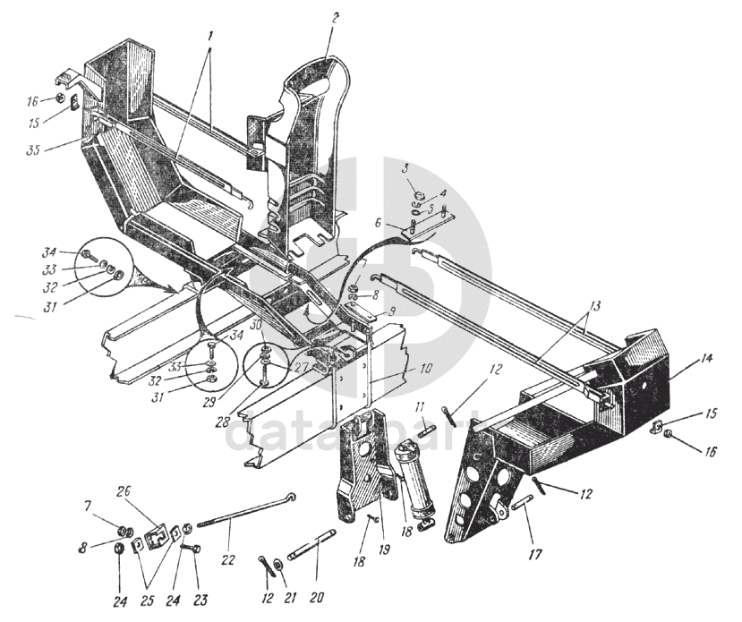 Держатель запасного колеса автомобиля Урал-375С (Рис. 80) УРАЛ-375