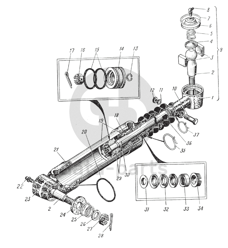 Цилиндр гидроусилителя с крышкой и втулкой в сборе