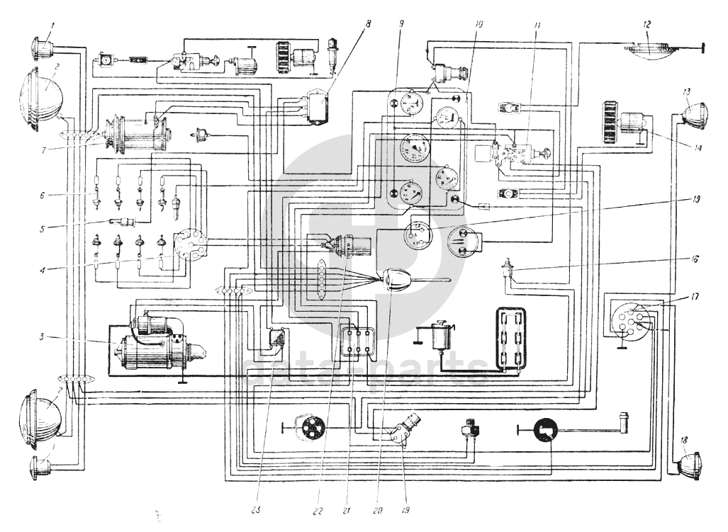 Схема электрооборудования автомобиля Урал-377 (Рис. 105) УРАЛ-375