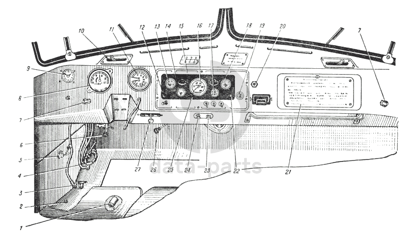 Щиток приборов автомобиля Урал-375Д (Рис. 122) УРАЛ-375