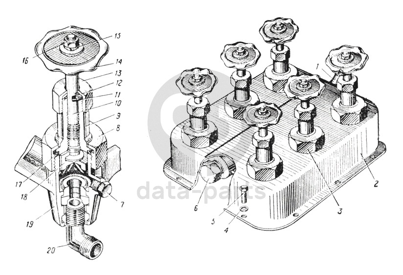 Блок шинных кранов (Рис. 128) УРАЛ-375