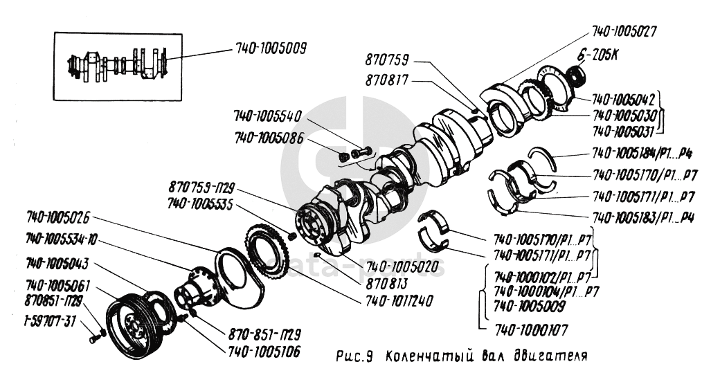 Комплект коленчатого вала, коренных и шатунных вкладышей