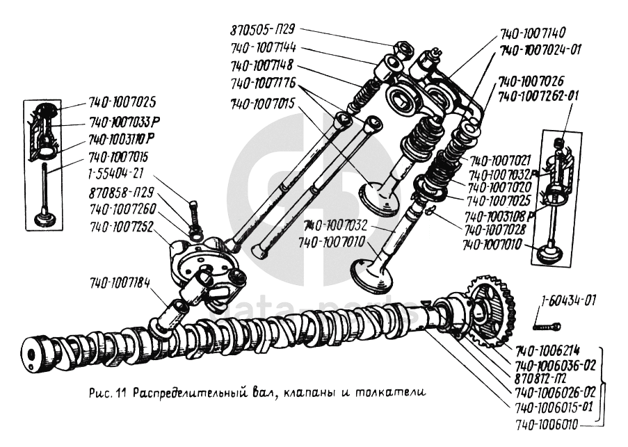 Распределительный вал, клапаны и толкатели УРАЛ-4320