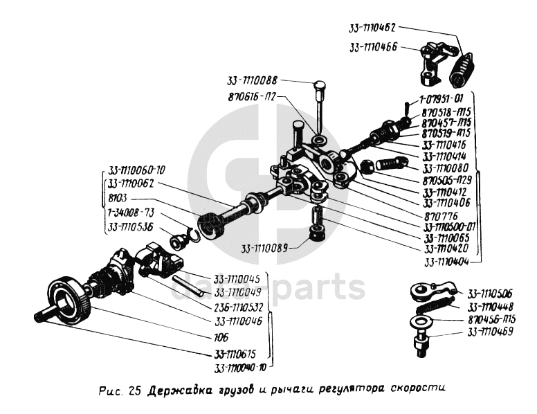 Державка грузов и рычаги регулятора скорости УРАЛ-4320