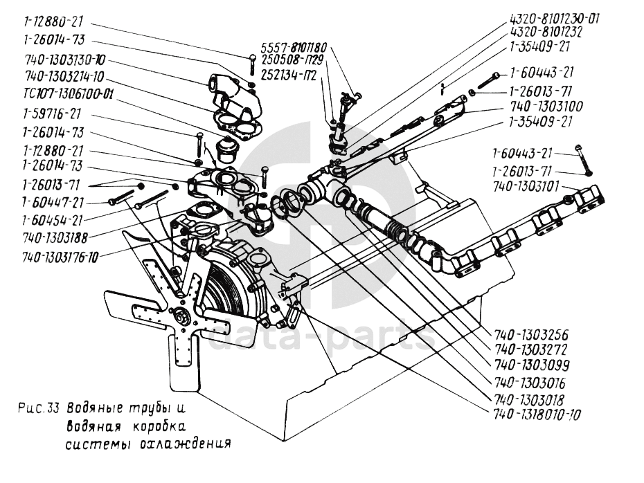 Водяные трубы и водяная коробка системы охлаждения УРАЛ-4320