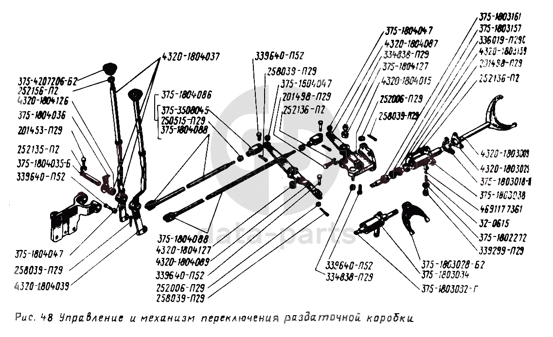 Управление и механизм переключения раздаточной коробки УРАЛ-4320
