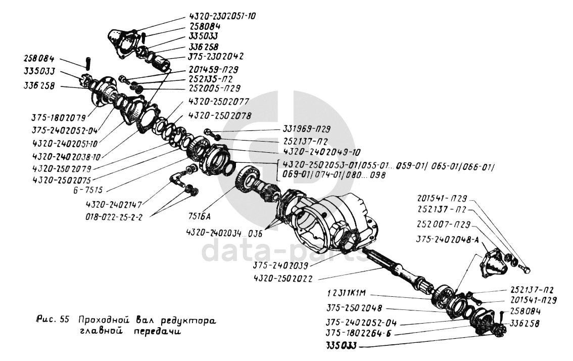 Проходной вал редуктора главной передачи УРАЛ-4320