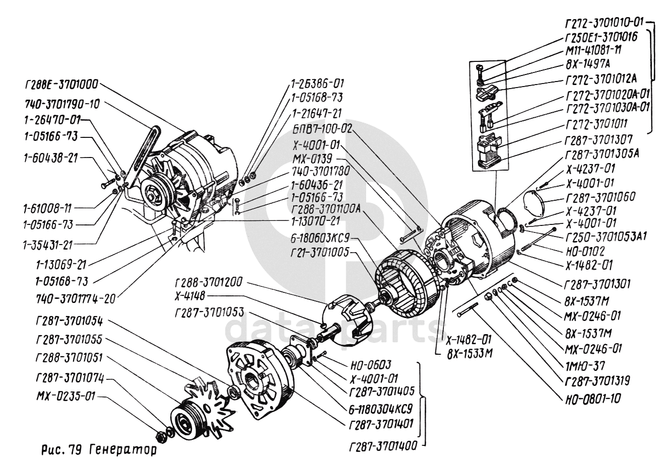 Крышка со стороны контактных колец с втулками и выпрямительным блоком в сборе