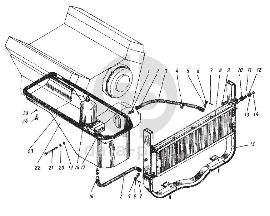 Шланг УРАЛ радиатора масляного d=16х25мм L=400мм