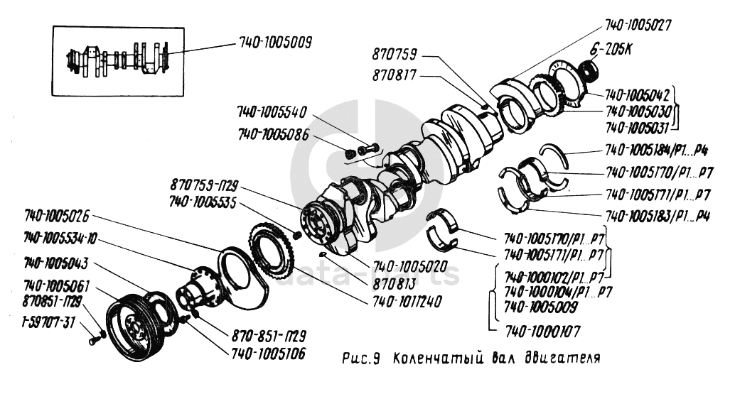 Комплект коленчатого вала, коренных и шатунных вкладышей