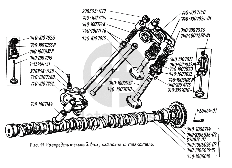 Распределительный вал, клапаны и толкатели УРАЛ-43202