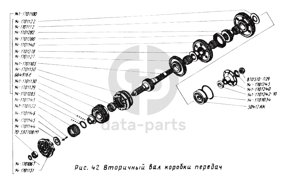 Вторичный вал коробки передач УРАЛ-43202