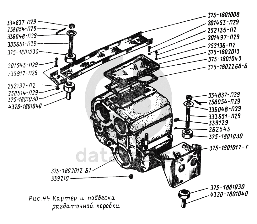 Картер и подвеска раздаточной коробки УРАЛ-43202