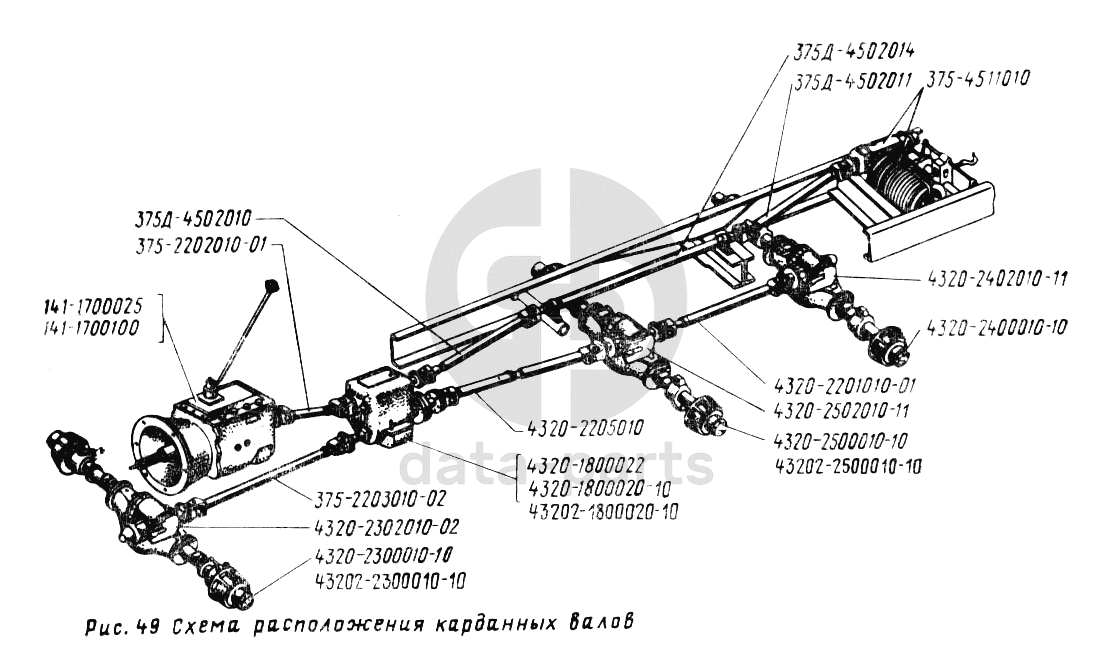 Средний мост в сборе (На автомобили выпуска до 1985 г. уст. с кард. валом 4320-2205010)