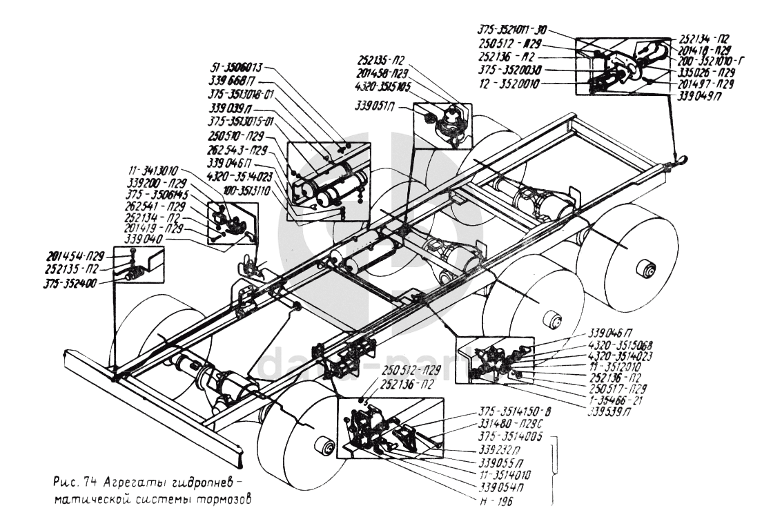 Агрегаты гидропневматической системы тормозов УРАЛ-43202