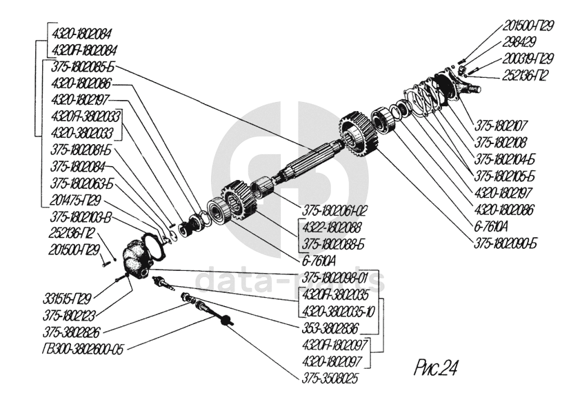 Промежуточный вал раздаточной коробки и привод спидометра УРАЛ-4320-31