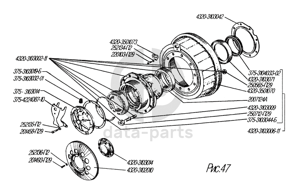Ступица колеса и тормозной барабан УРАЛ-4320-31