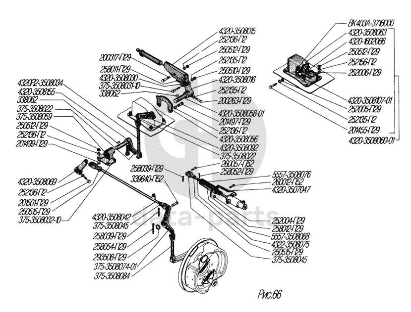 Привод стояночного тормоза и управление краном торможения прицепа УРАЛ-4320-31