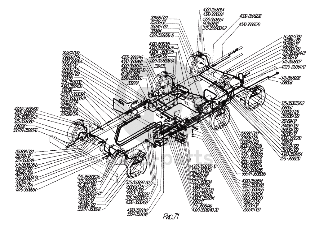 Трубопроводы и шланги гидропневматического привода рабочих тормозов УРАЛ-4320-31