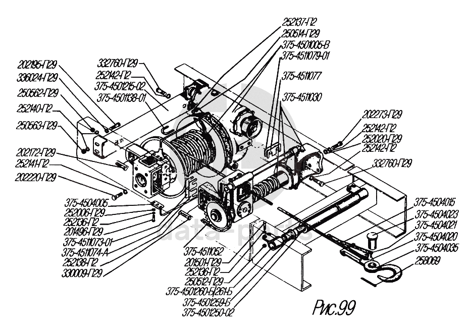 Лебедка с тросоукладчиком в сборе УРАЛ-4320-31
