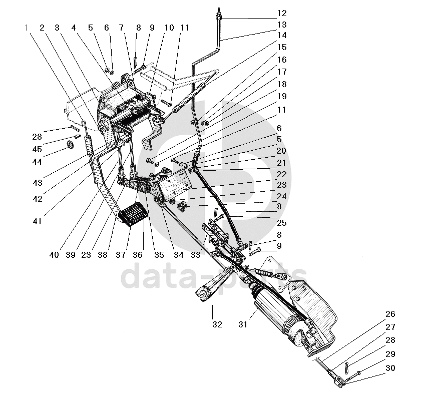 Привод педалей сцепления и тормоза (трансмиссия для МО)