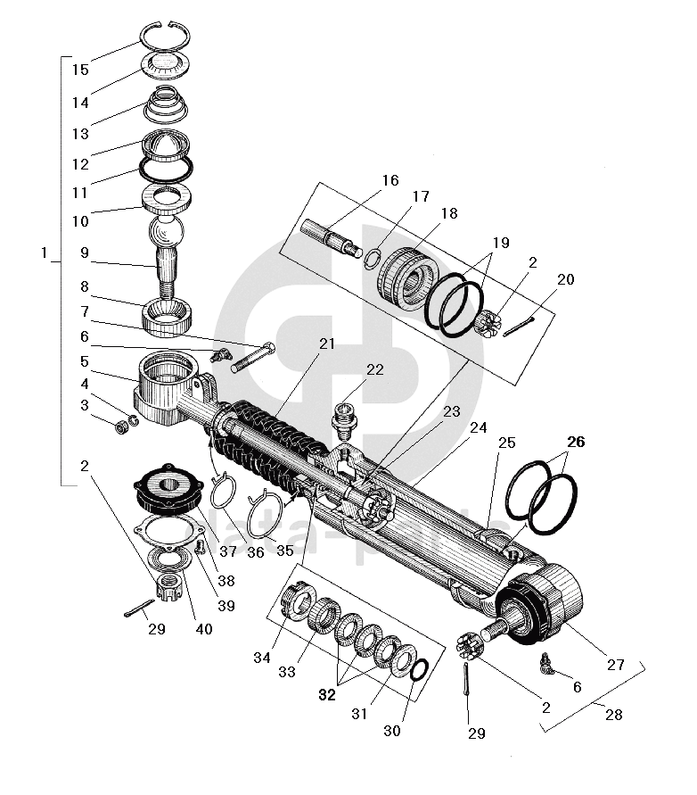 Цилиндр гидроусилителя с крышкой и втулкой в сборе