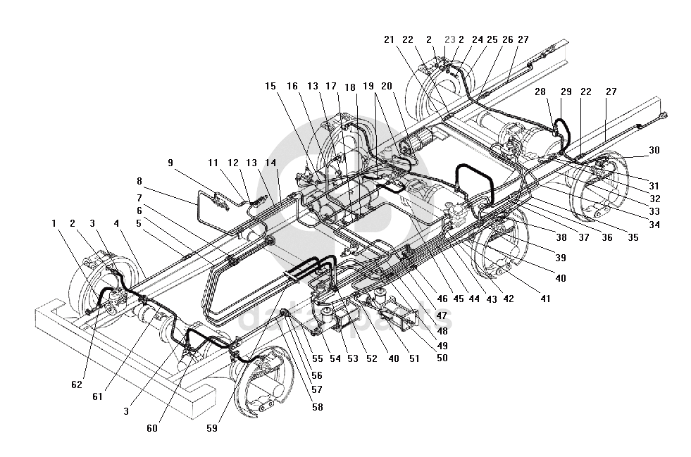 Трубопроводы и шланги пневмогидравлического привода рабочих тормозов без АБС УРАЛ-4320-31