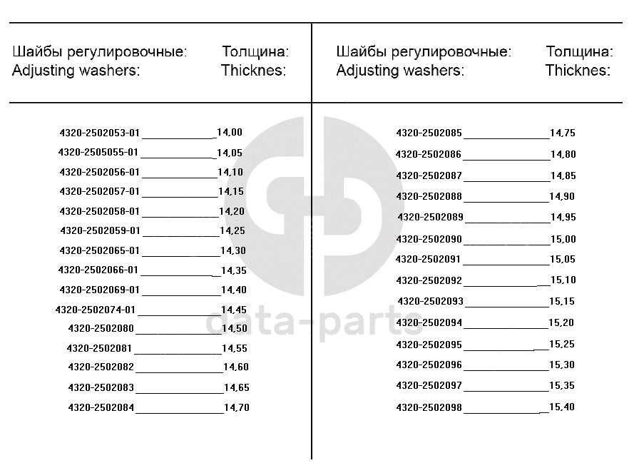 Шайба регулировочная толщиной, 14,15