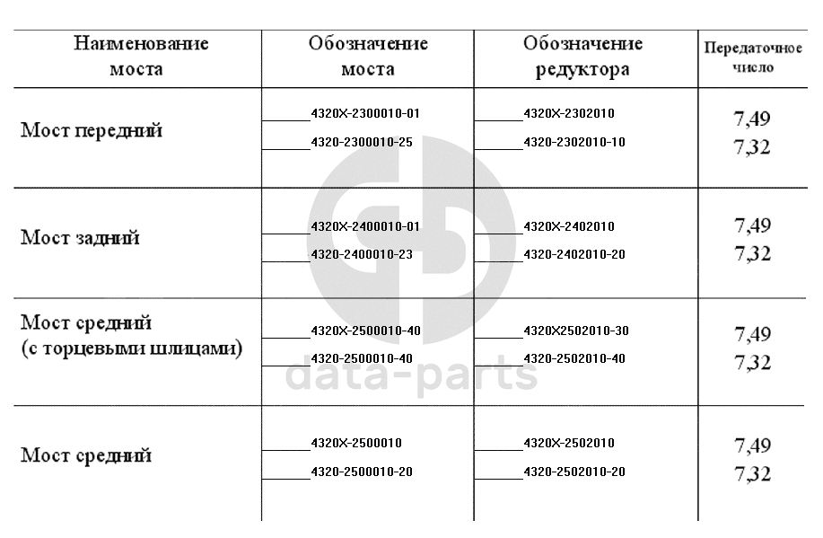 Номенклатура мостов с АБС УРАЛ-4320-31