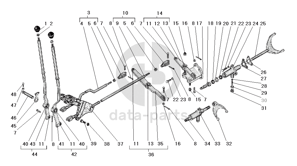Вал рычагов управления раздаточной коробкой