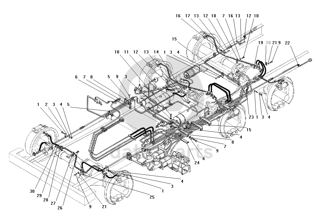 Крепление трубопроводов и шлангов пневмогидравлического привода рабочих тормозов (Без АБС см. Приложение №1)