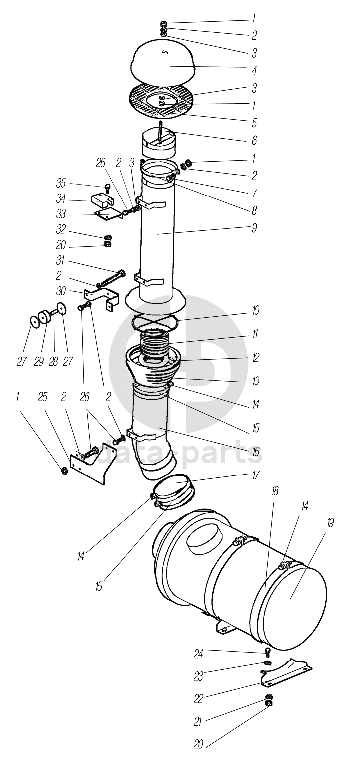 Установка воздушного фильтра и воздухозаборной трубы на автомобили 4320-0004971-82М, 4320-0004972-82М УРАЛ-4320-80М/82М