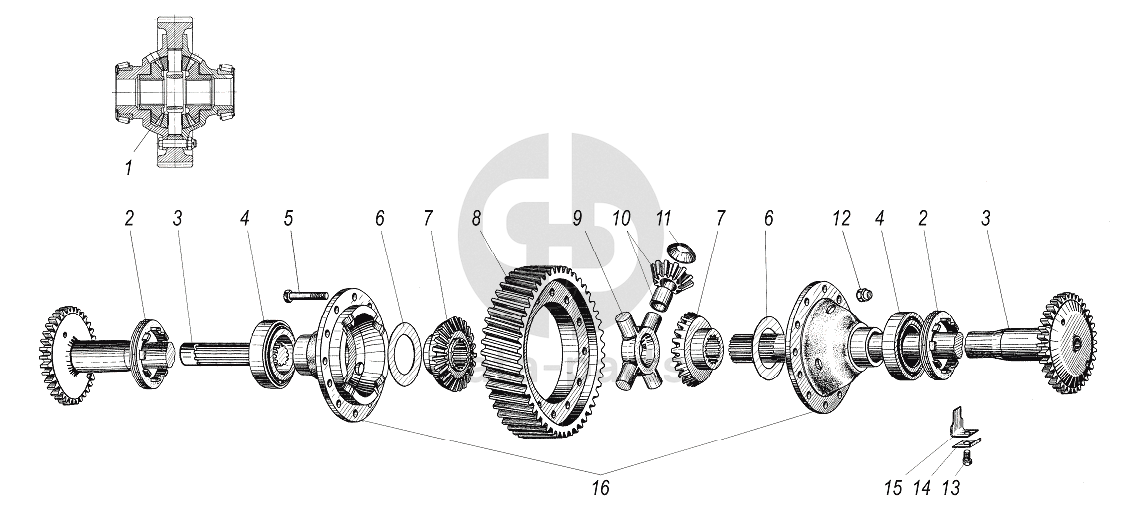 Дифференциал и полуоси среднего и заднего моста УРАЛ-4320-80М/82М