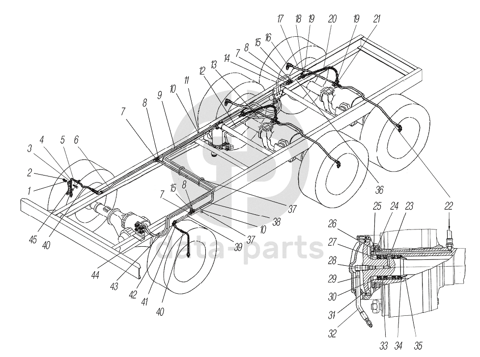 Система регулирования давления воздуха в шинах УРАЛ-4320-80М/82М