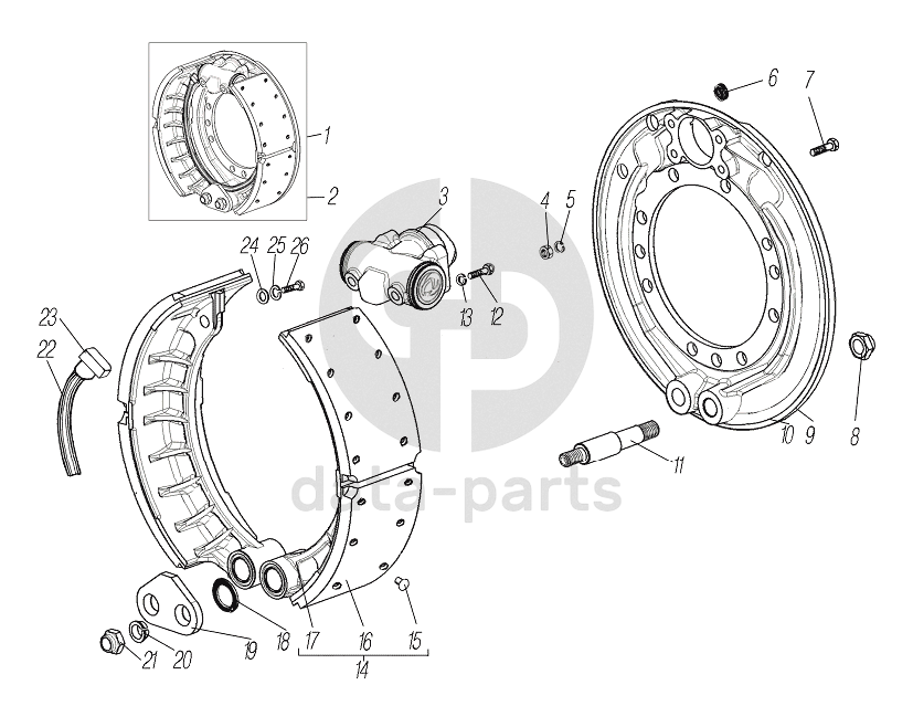Тормоз УРАЛ рабочий в сборе левый (пневмо)