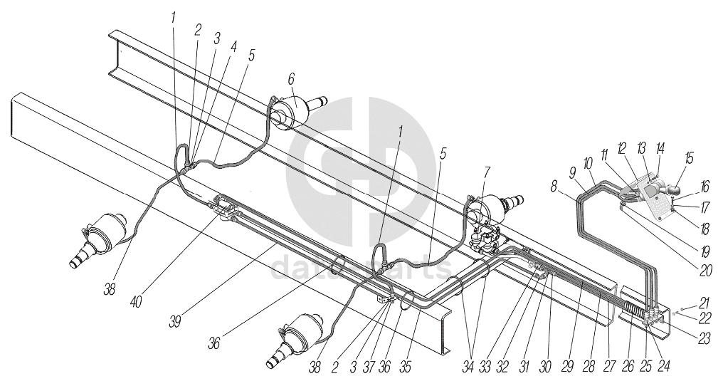 Трубка УРАЛ к камере тормозной правой в сборе медь