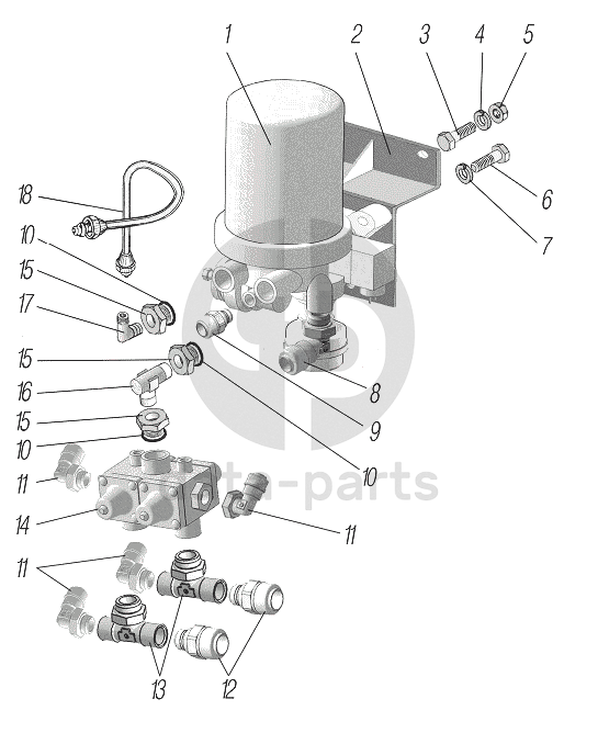 Установка адсорбера и четырехконтурного защитного клапана УРАЛ-4320-80М/82М