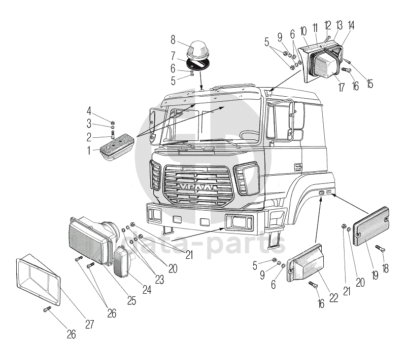 Установка фар, фонарей знака автопоезда, габаритных и указателей поворота УРАЛ-4320-80М/82М