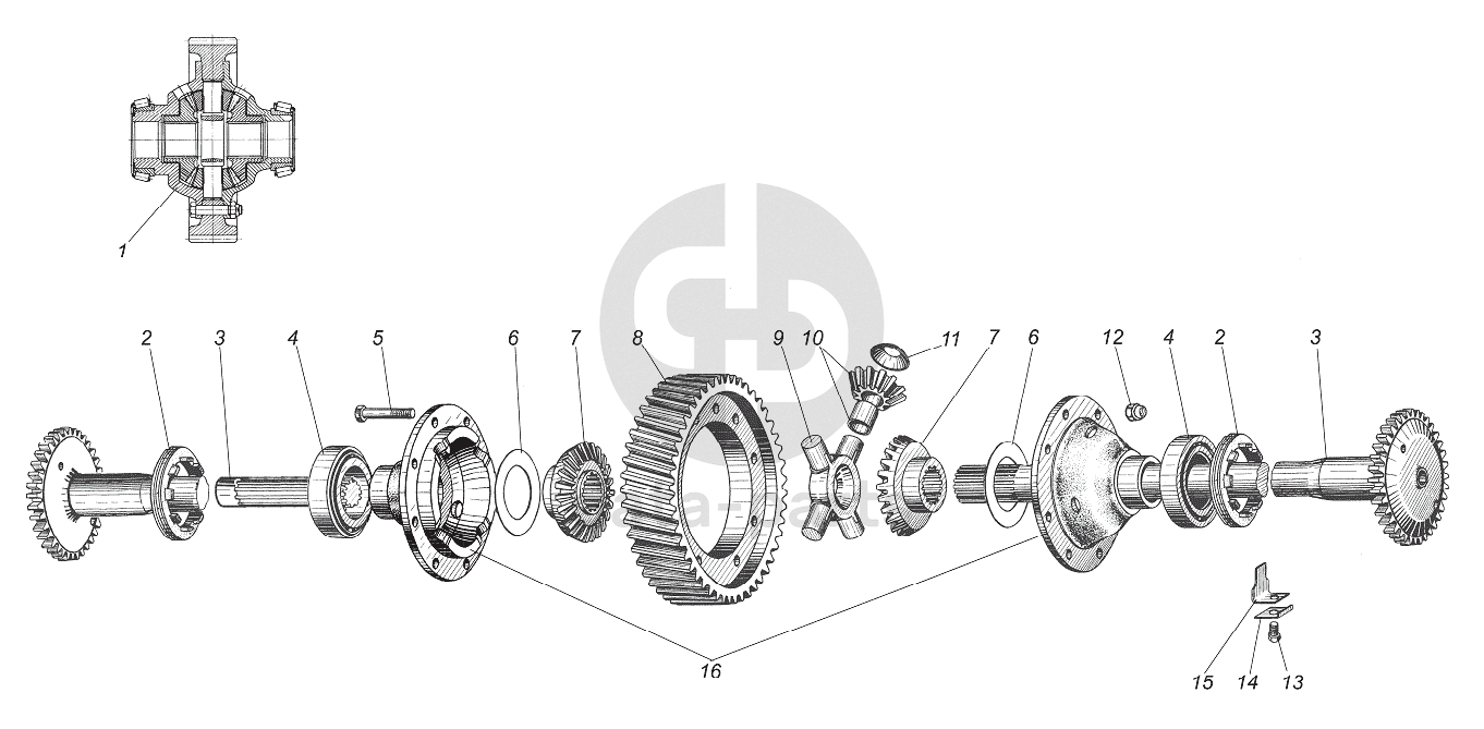 Дифференциал и полуоси среднего и заднего моста УРАЛ-4320-1951-58