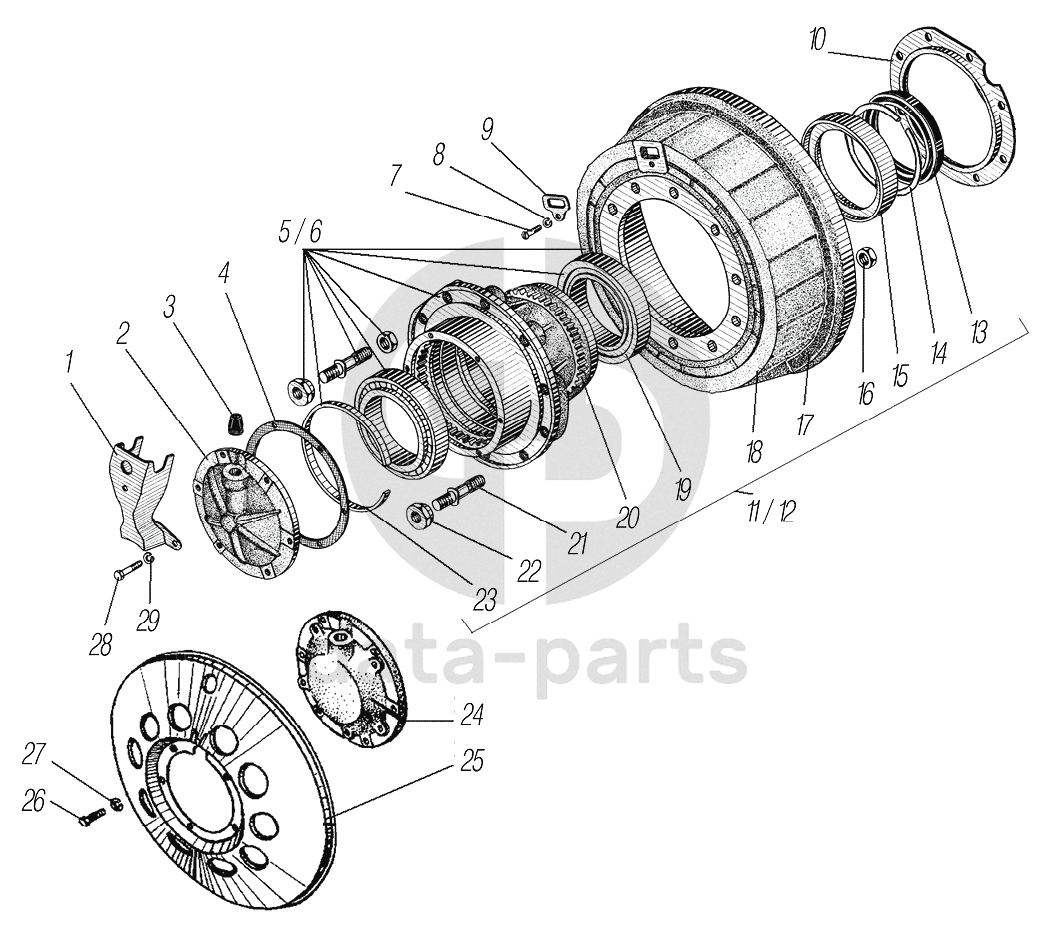 Ступица колеса и тормозной барабан УРАЛ-4320-1951-58