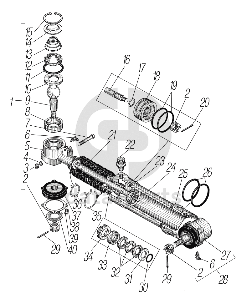 Цилиндр гидроусилителя с крышкой и втулкой в сборе
