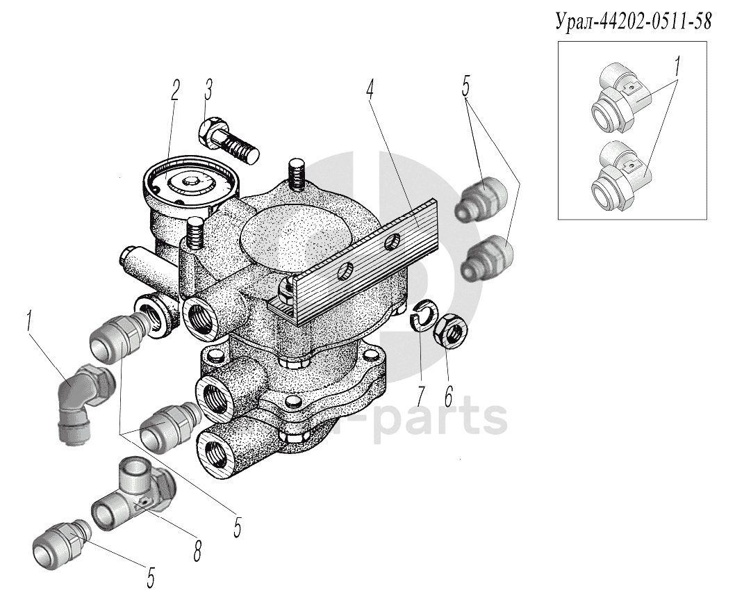 Установка клапана прицепа УРАЛ-4320-1951-58