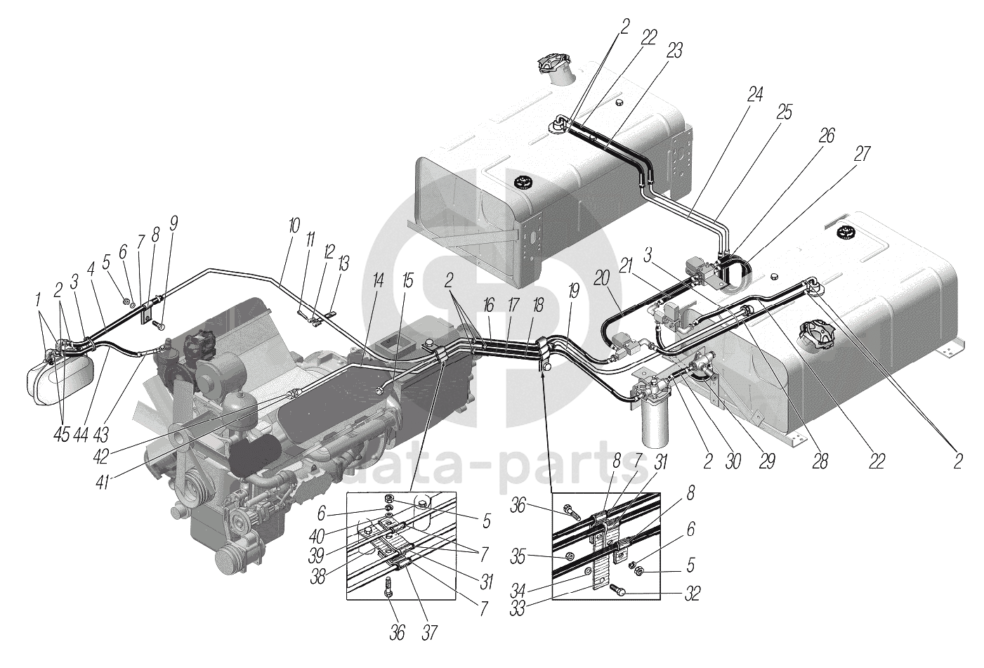 Трубопроводы и шланги системы питания с дополнительным баком УРАЛ-4320-1151-59