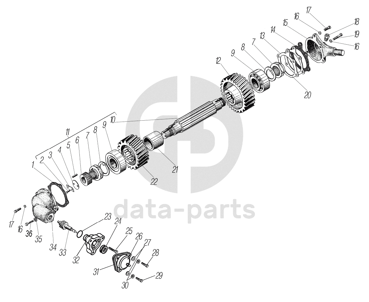 Валик шестерни привода спидометра в сборе (Уст.только на Урал-4320 до 1985 г.)